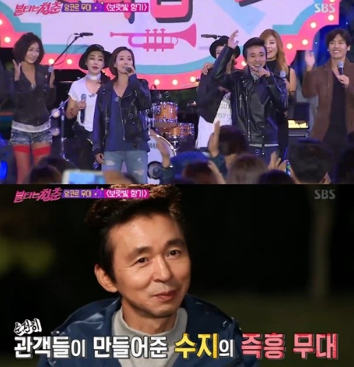 한편 관객들은 공연 마지막에 인사를 하러 올라온 멤버들의 이름을 연호했고 강수지가 특별한 앵콜 무대를 꾸몄다. 특히 강수지와 김국진이 ‘보라빛 향기’에 맞춰 다정한 눈빛을 교환, 무대를 빛크빛으로 물들였다.