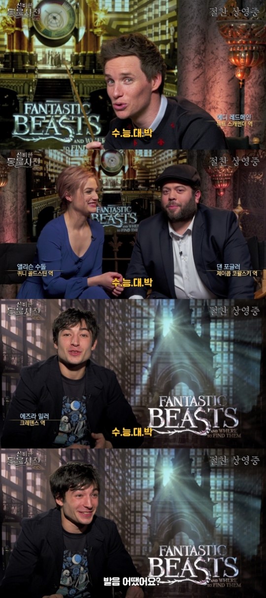 영화 ‘신비한 동물사전’의 주인공 에디 레드메인과 캐서린 워터스턴, 댄 포글러, 앨리슨 수돌과 에즈라 밀러 등 출연배우들이 17일 대학수학능력시험을 앞두고 있는 한국의 학생들을 위해 응원의 영상을 보내왔다.