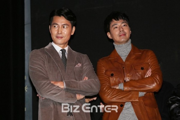 배우 정우성과 조인성이 15일 오전 서울 강남구 신사동 CGV 압구정에서 진행된 영화 '더 킹' 제작발표회에서 포토타임을 기다리고 있다.