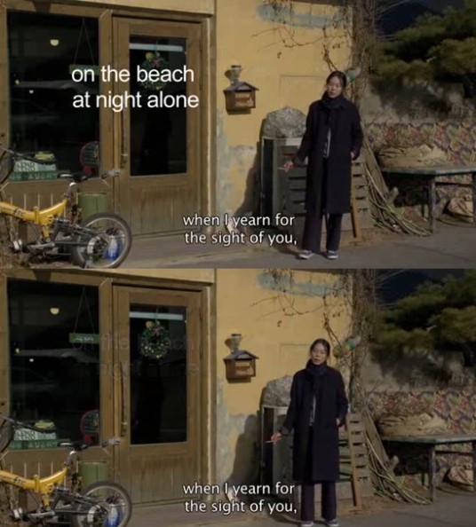 영상에는 한적한 시골의 카페로 보이는 문 앞에서 홀로 서 있는 김민희의 모습이 담겨있다.
