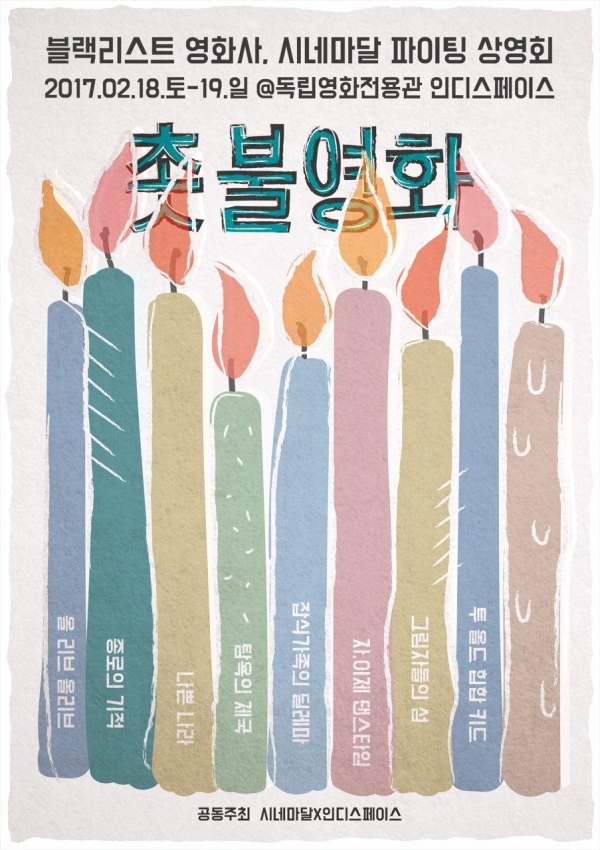 이러한 행보에 이어, 또 한 번의 의미있는 풍경이 극장에서 펼쳐진다. 오는 18일-19일 양일간, 독립영화전용관 인디스페이스에서 열리는 ‘촛불영화: 블랙리스트 영화사, 시네마달 파이팅 상영회’ 기획전이 그것이다.