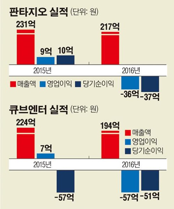 금융감독원 전자공시에 따르면 큐브엔터는 지난해 57억 원에 이르는 영업손실을 기록하면서 전년 대비 적자전환했다. 2015년 영업이익은 7억1000만 원으로 지난 한 해 손실 규모가 64억 원에 달했다. 같은 기간 매출액은 194억 원으로 전년 대비 13.1% 감소했고, 당기순손실은 51억 원을 기록했다.